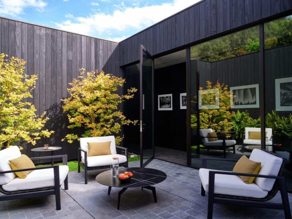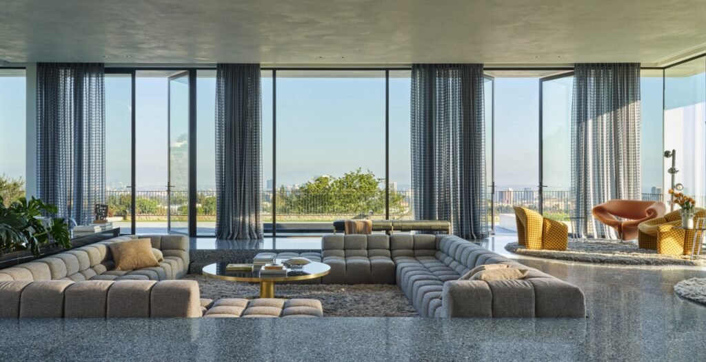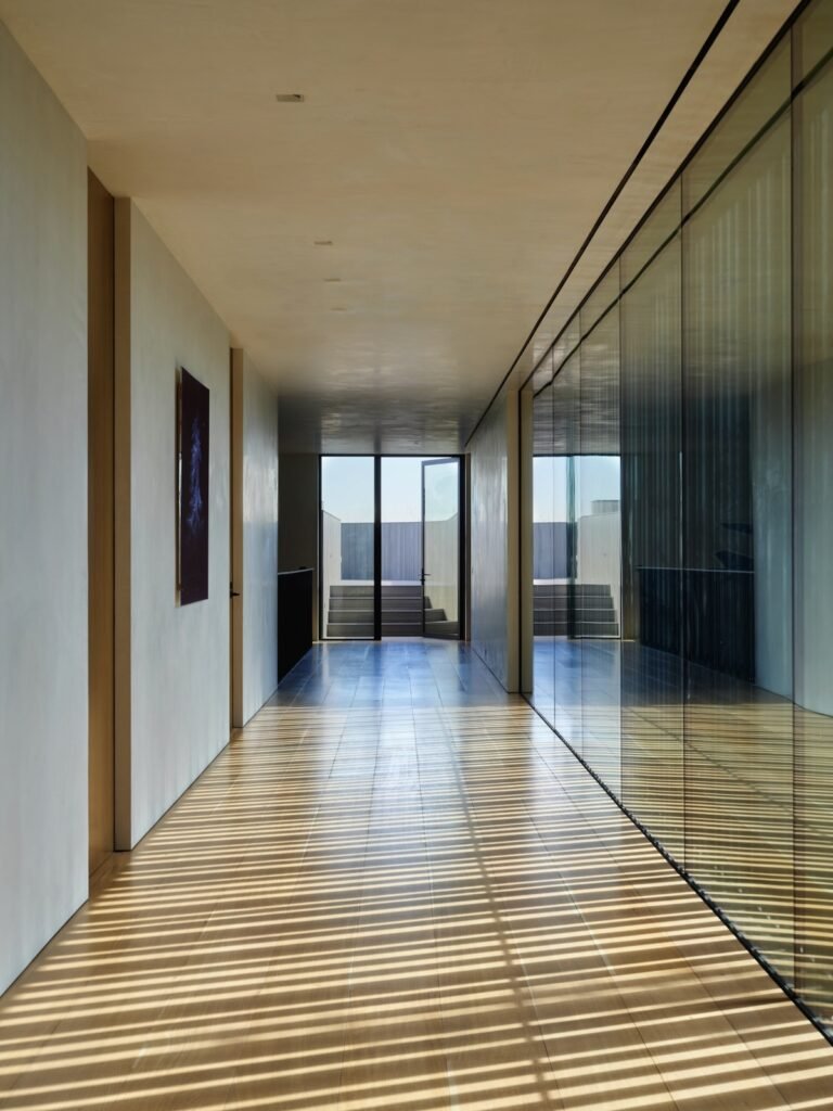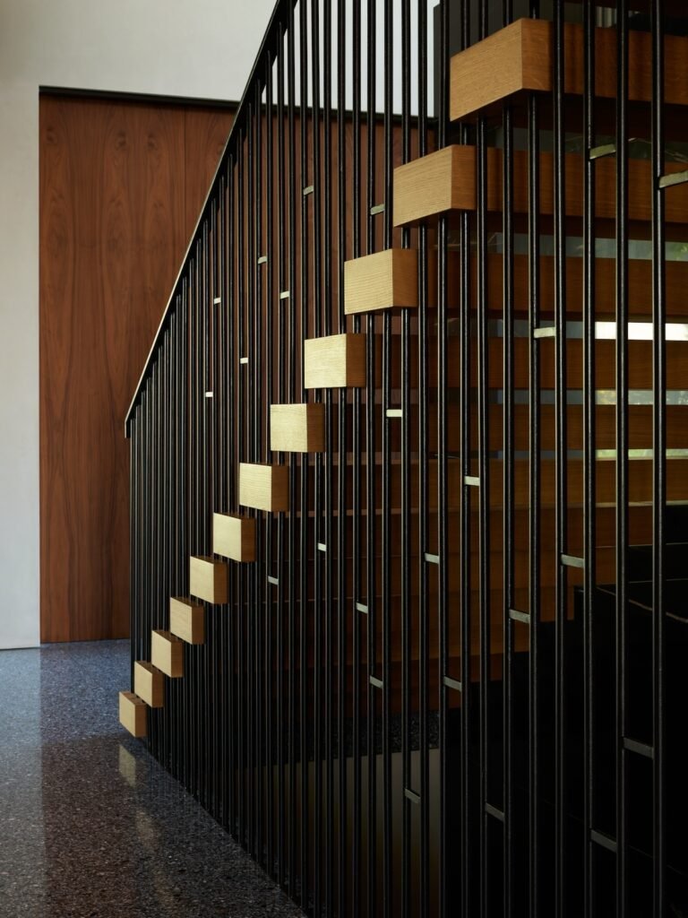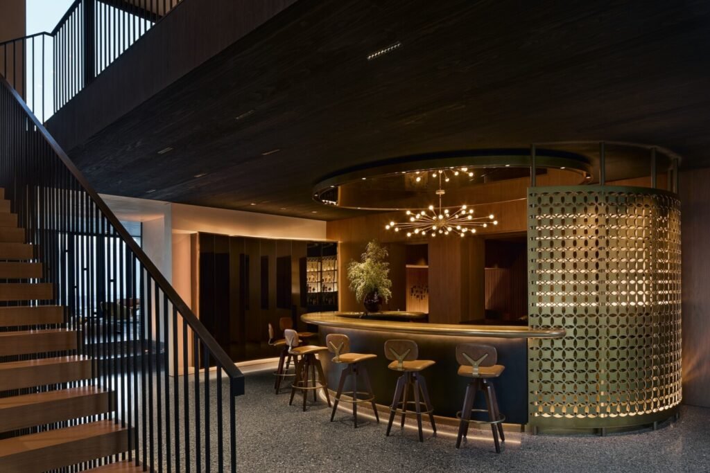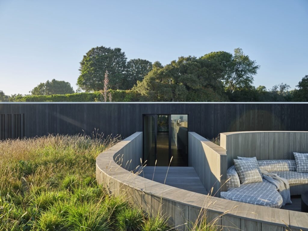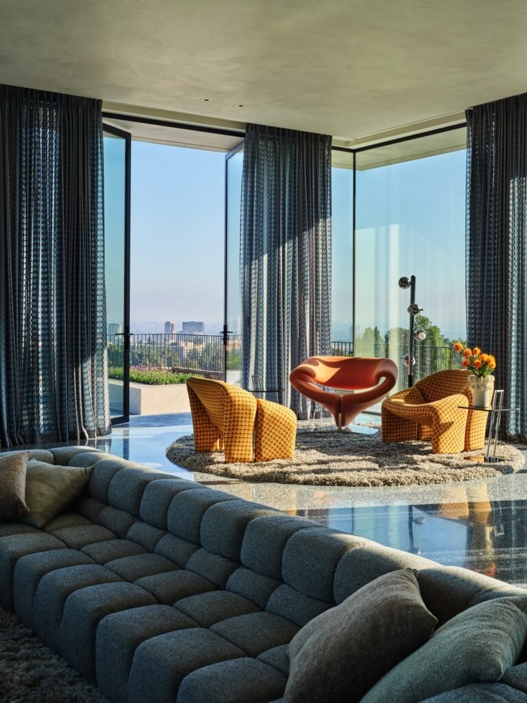 Set on a promontory in the heart of the Santa Monica Mountains, Strata House preserves the site’s rich history through contemporary form and finishes. The project name signifies the many iterations and layers – or “strata” – of the property’s past, which is also expressed through its materiality. A battered stone base references the site’s longtime evolution and provides a foundation for the home’s glass-walled pavilion, a vestige from a past life when the site was home to a 1960s structure designed by Modernist architect John B. Parkin. Two delicate cantilevers clad in Shou Sugi Ban rest atop the volumes below, representative of its current reimagining as a private residence.