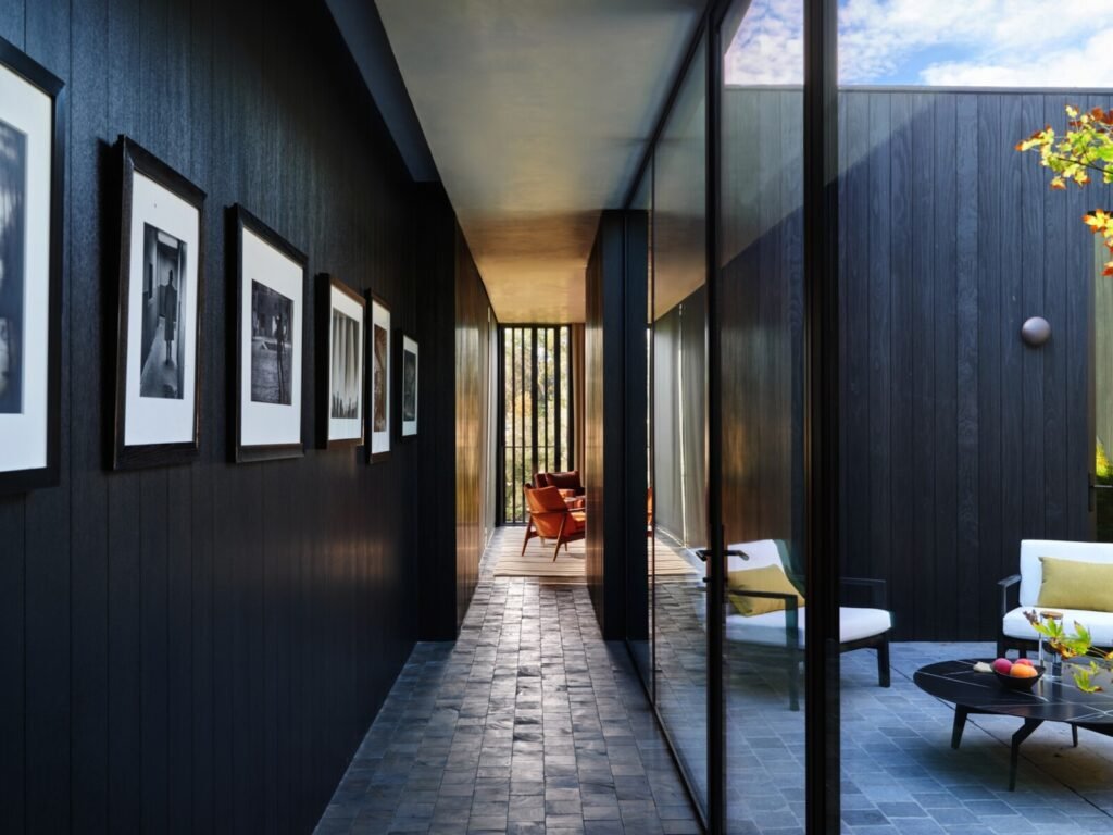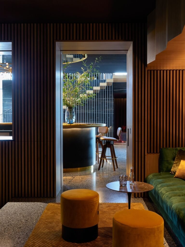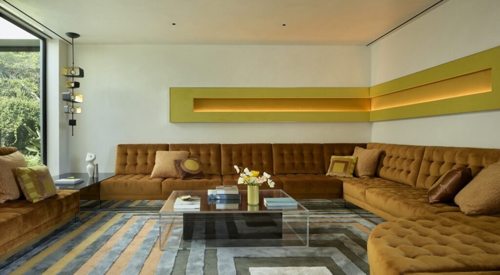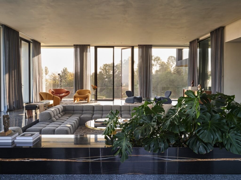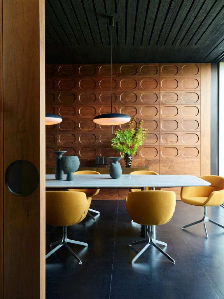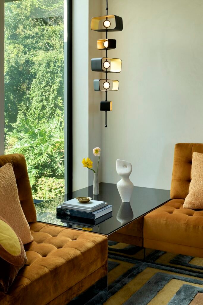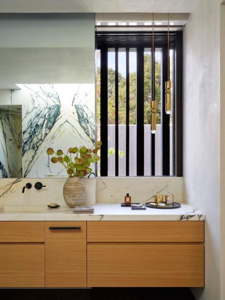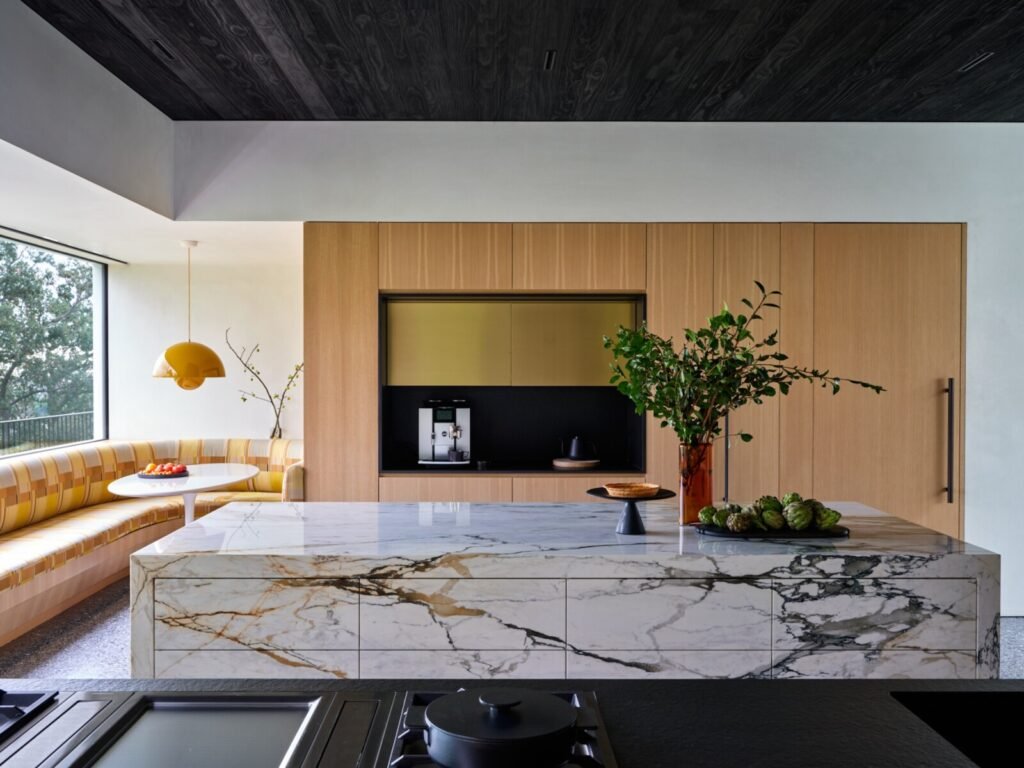 Having designed both the architecture and interiors, our goal was to craft a dwelling that would honor the site’s mid-century pedigree while marking a new chapter better suited to its current owners. Spacious open areas give way to moments of warmth and intimacy within the house, which bridges the roles of family home and venue for entertaining.